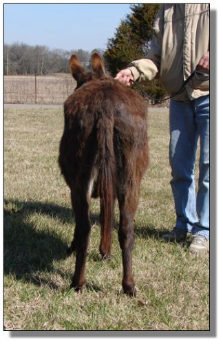 Whoopie was allowed to rest for a year and was then bred to PGF Peppercorn Jack for a 2005 foal. Whoopi delivered a dark brown jennet on 4/19/05 @ 10:31am. Click the link to see photos of Fat Bottom Girl, aka Fattie!